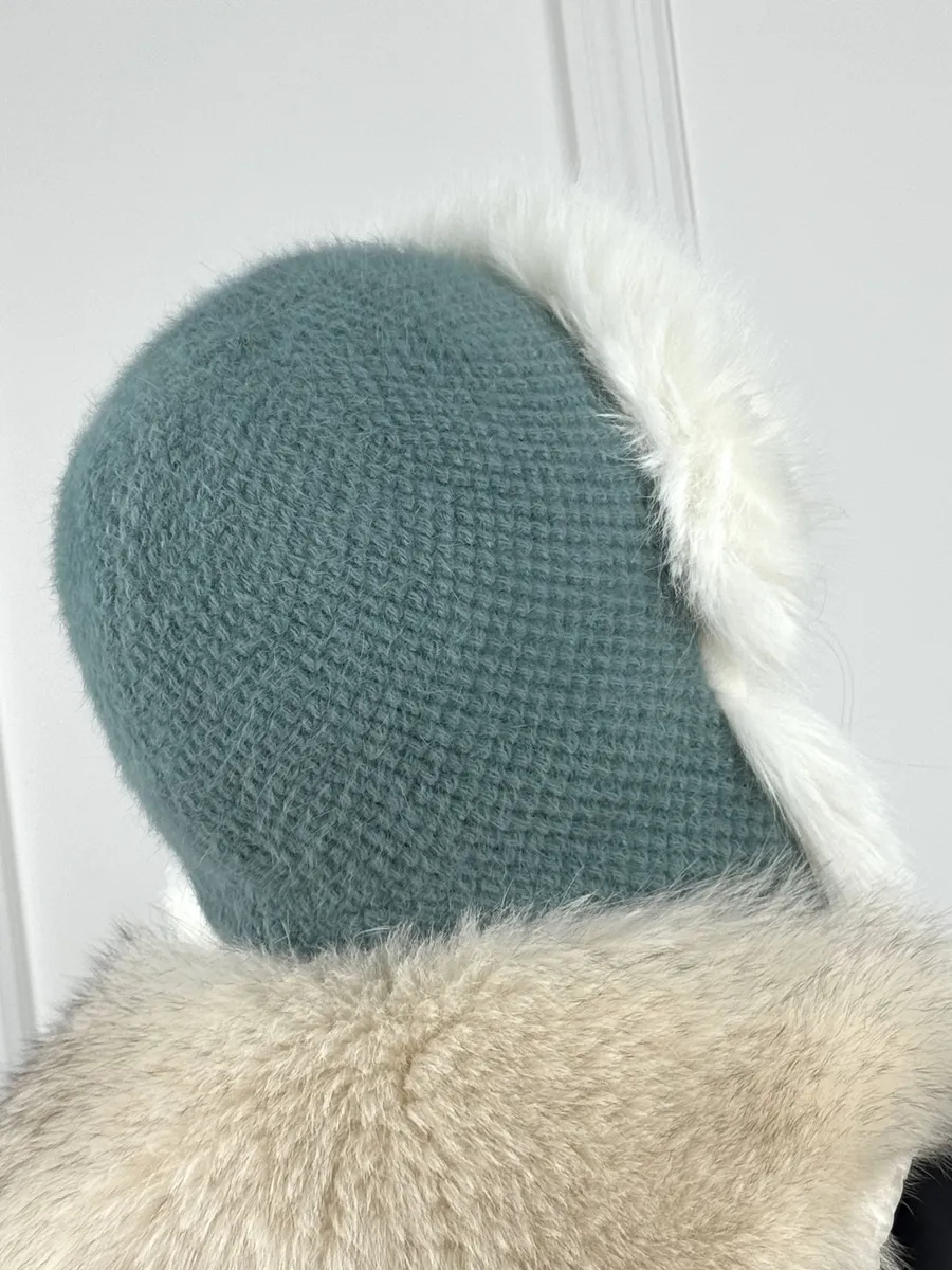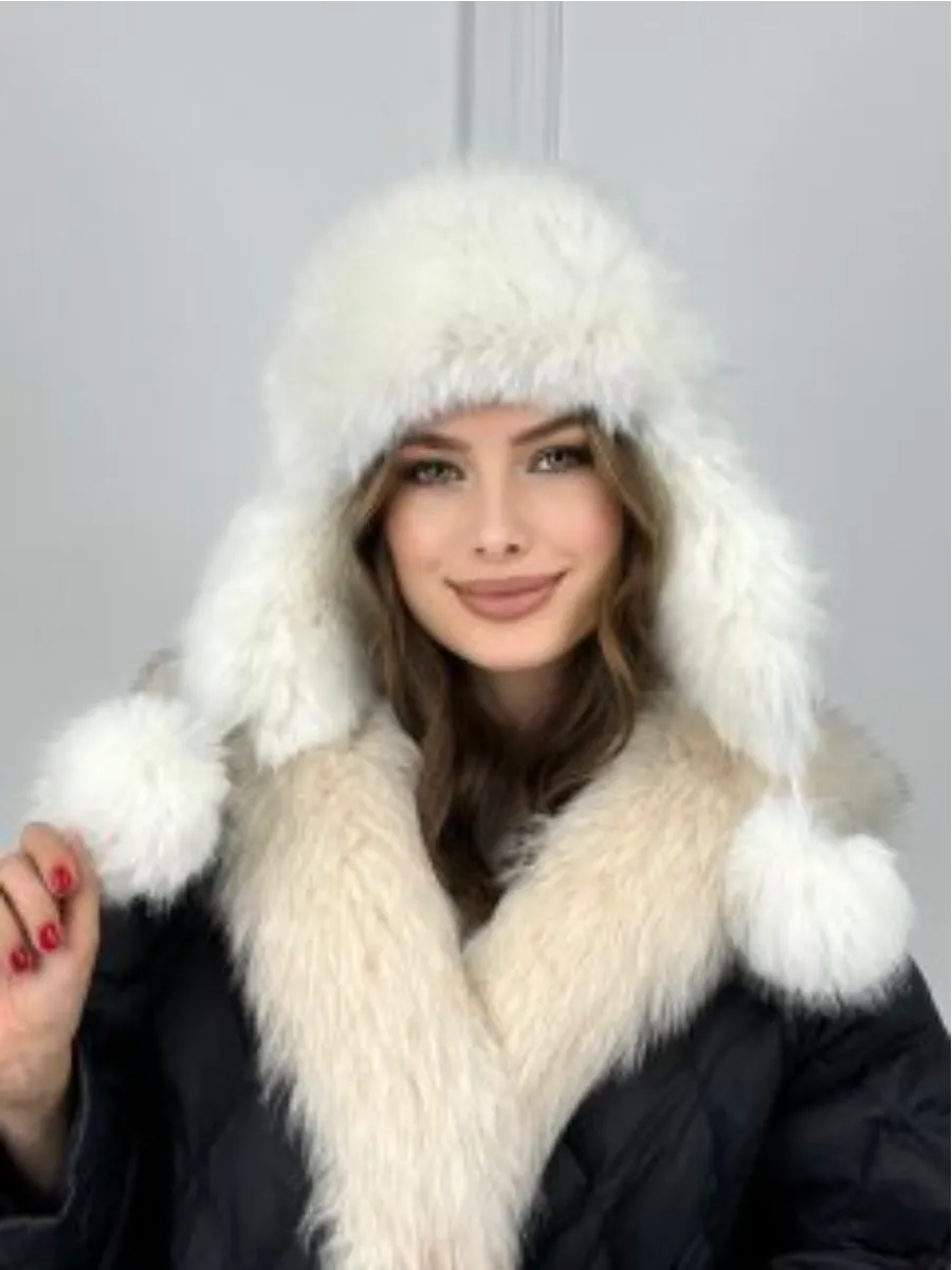 Изготовлена из меха ангоры 80% с добавлением шерсти и акрила, с мягкой флисовой подкладкой — шапка сохраняет комфорт даже при морозе до −25 °C.