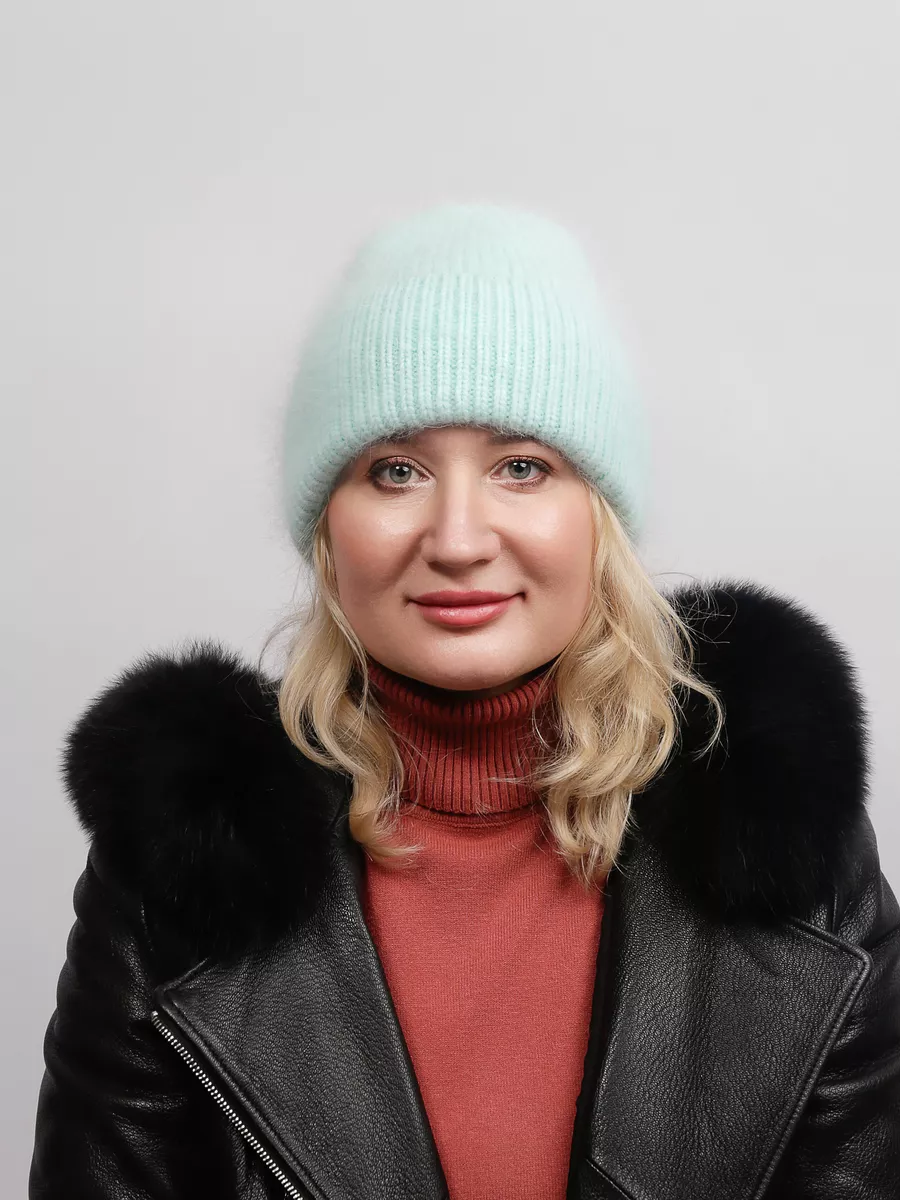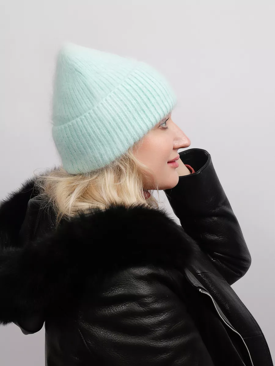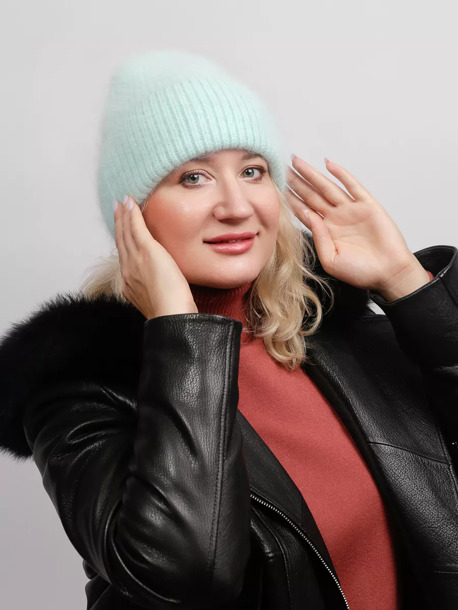 шапка вязаная женская ангора пушистая меховая,