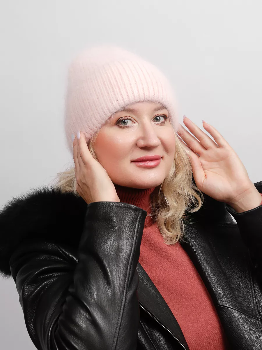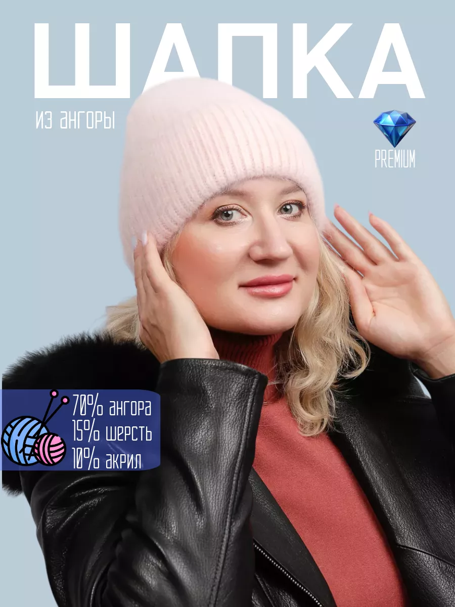 шапка вязаная женская ангора пушистая меховая,