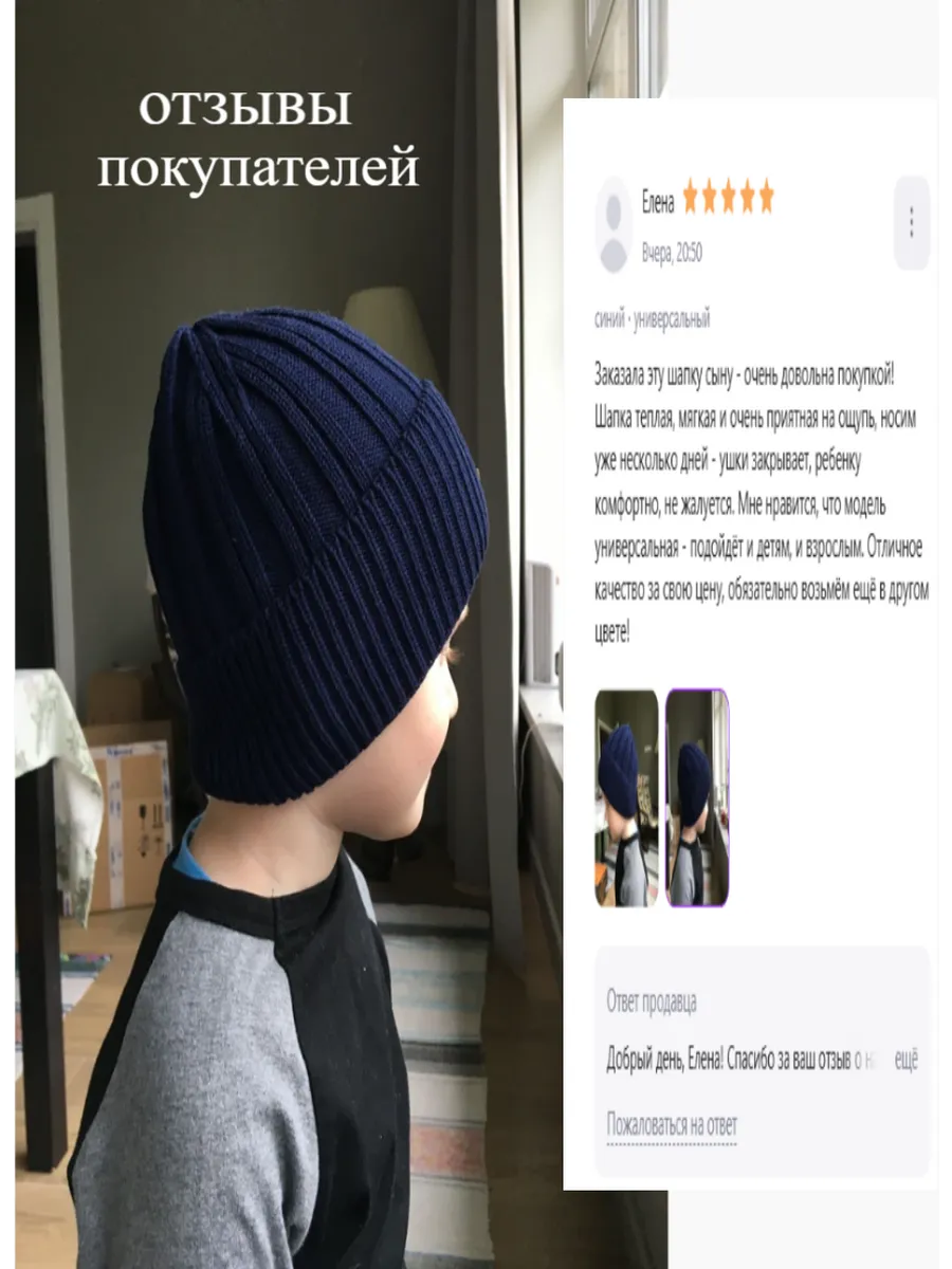 Шапка выполнена из качественного материала, который дарит тепло и уют без ощущения дискомфорта. Благодаря плотной вязке, она достаточно теплая, но при этом не кажется громоздкой. Это отличный демисезонный вариант: прекрасно подойдет для прохладной весны, осенней поры и даже мягкой зимней погоды. Не слишком тонкая, но и не чрезмерно объемная, эта утепленная шапка создаст уют в любой ситуации. В составе присутствует хлопок и шерстяная нить для дополнительного комфорта и мягкости.