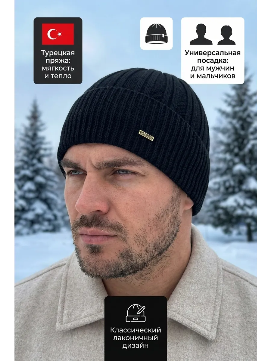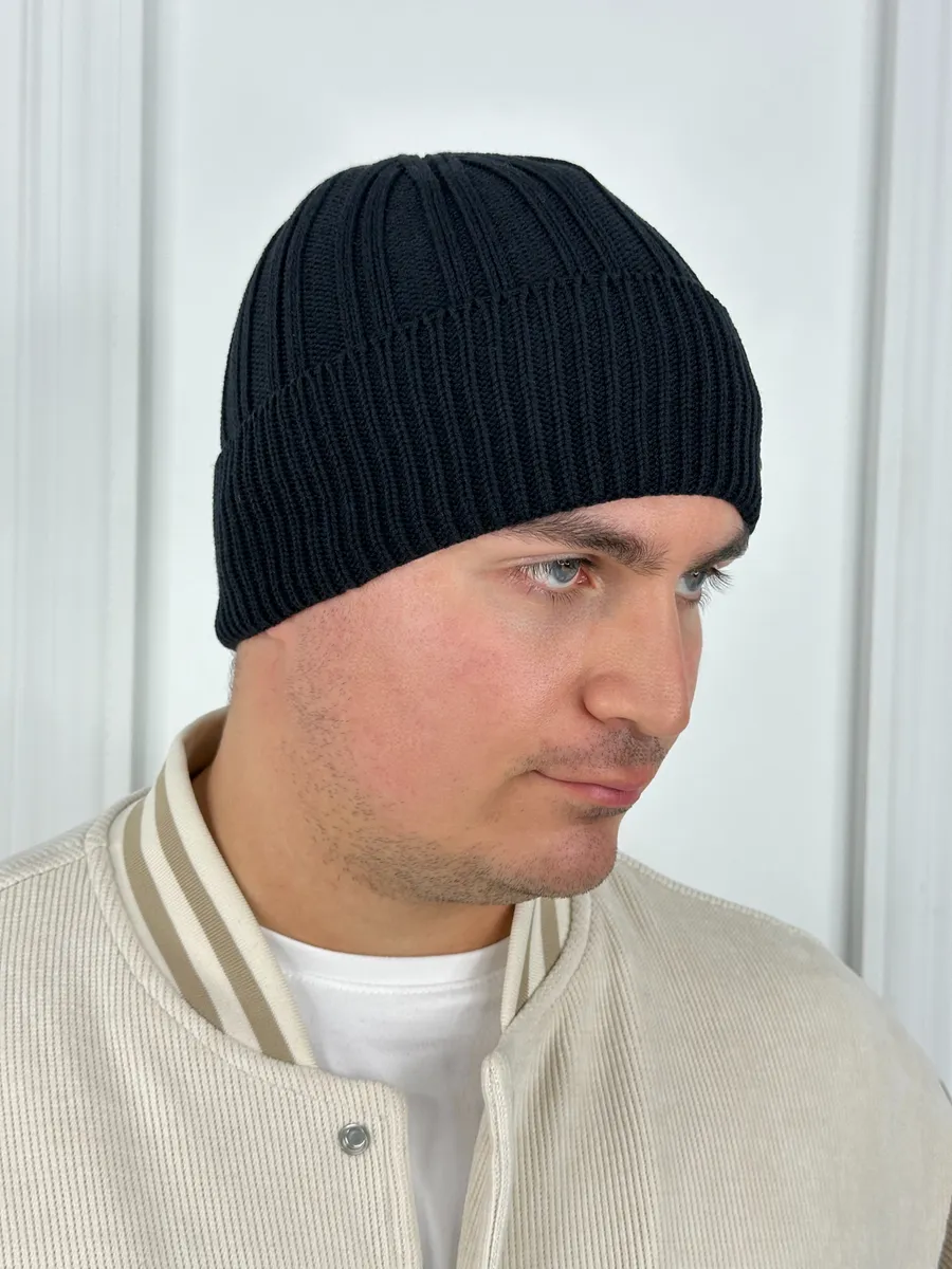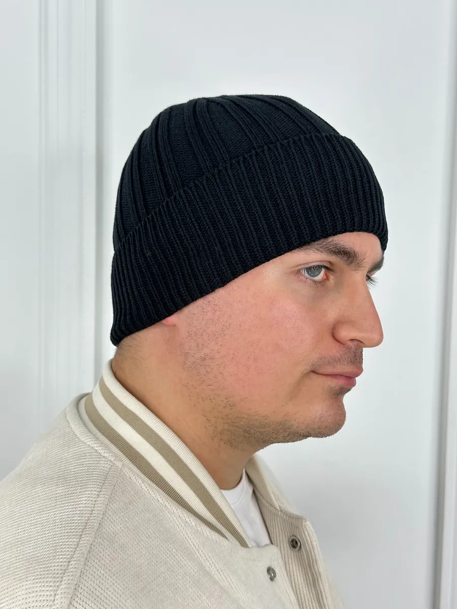 Представляем универсальную вязаную шапку, которая станет неотъемлемой частью вашего гардероба. Эта черная модель-бини с широким отворотом идеально подходит для создания модного образа. Она сочетает в себе стиль и комфорт, что делает её идеальным головным убором для активных мужчин, а также подростков и для мальчика.