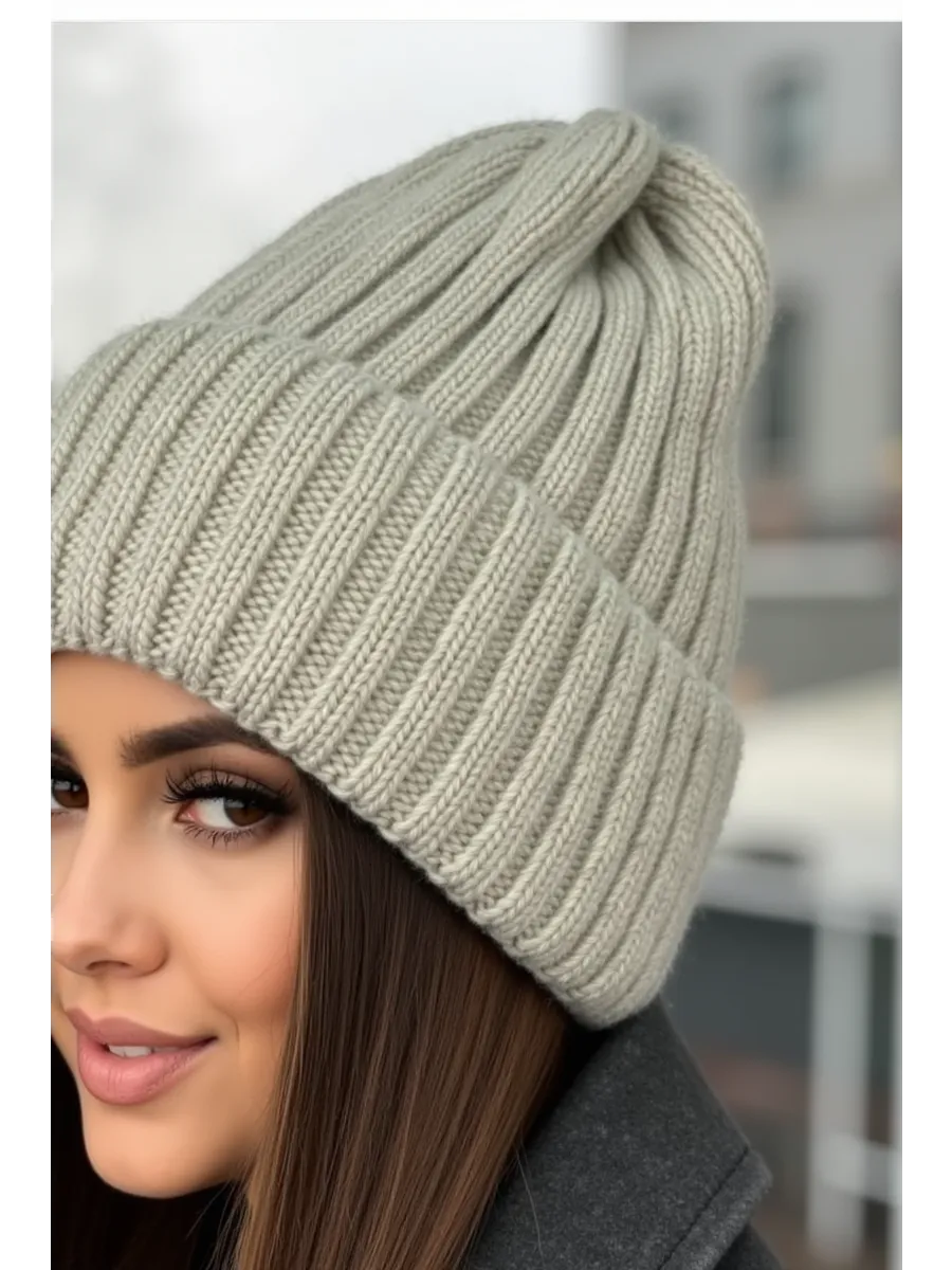 стильная шапочка с отворотом,