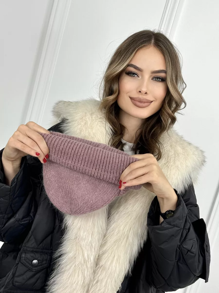 шапка бини пушистая ангорка