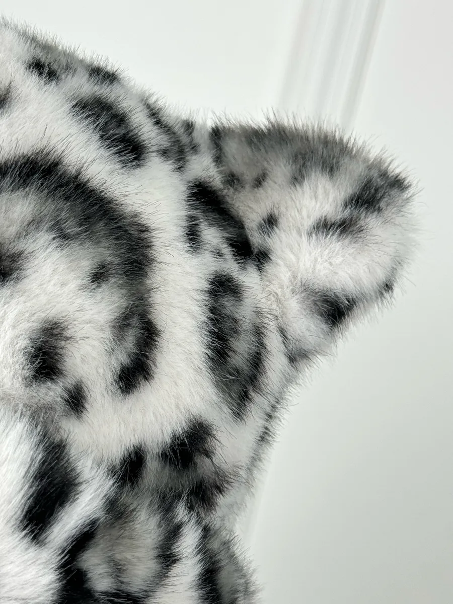 шапка тюбетейка мягкая пушистая с ушками леопардовая