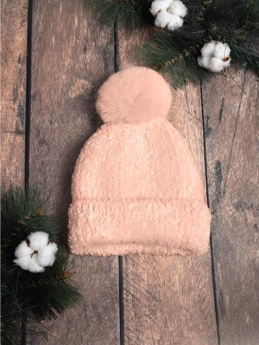 Шапка мягкая тёплый вязанный головной убор с помпоном,