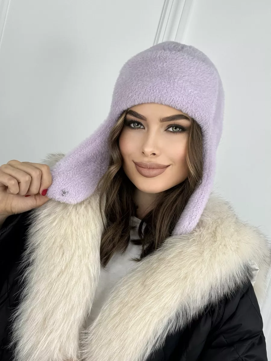 Форма “ушанка” остаётся в моде уже несколько сезонов подряд. Удлинённые ушки можно завязать под подбородком, оставить свободно или аккуратно закинуть назад — как вам удобно.