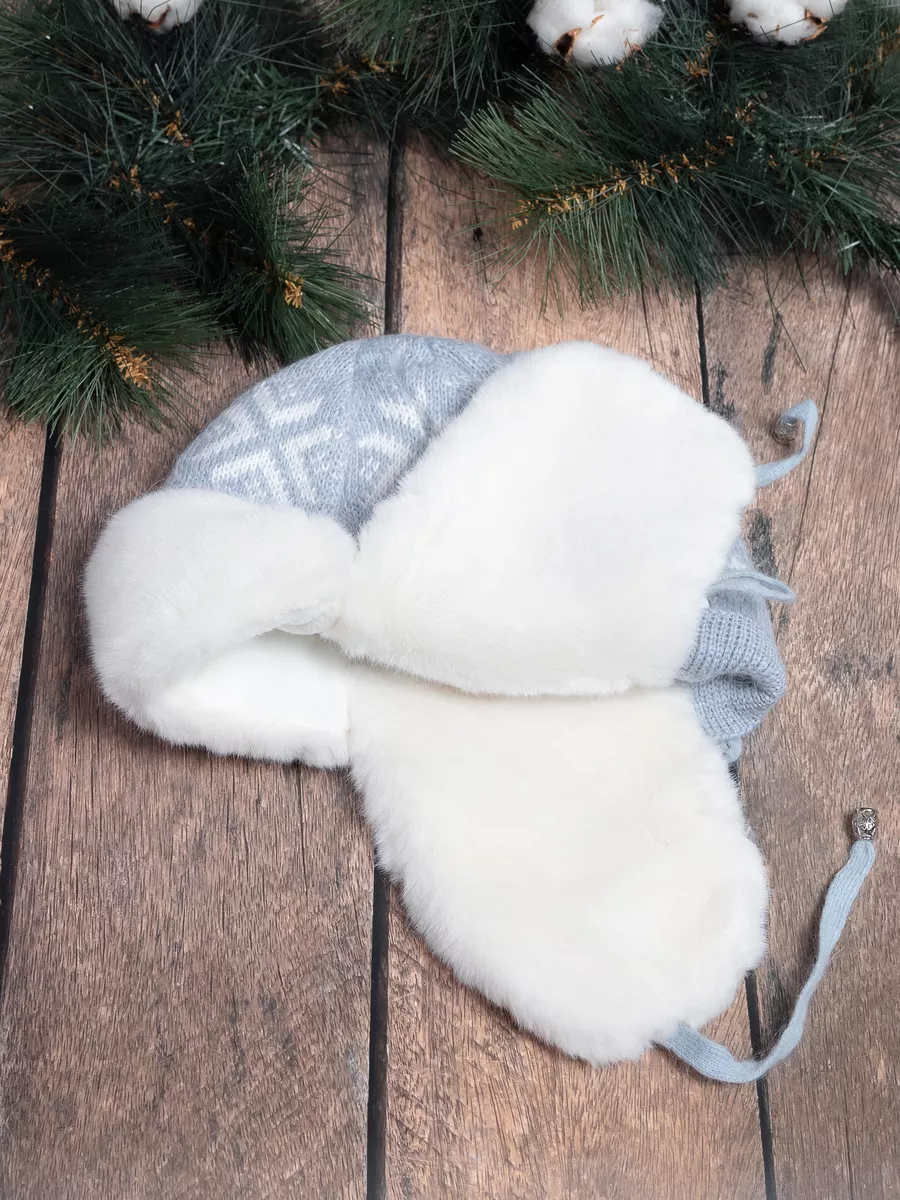 шапка ушанка вязаная меховая теплая