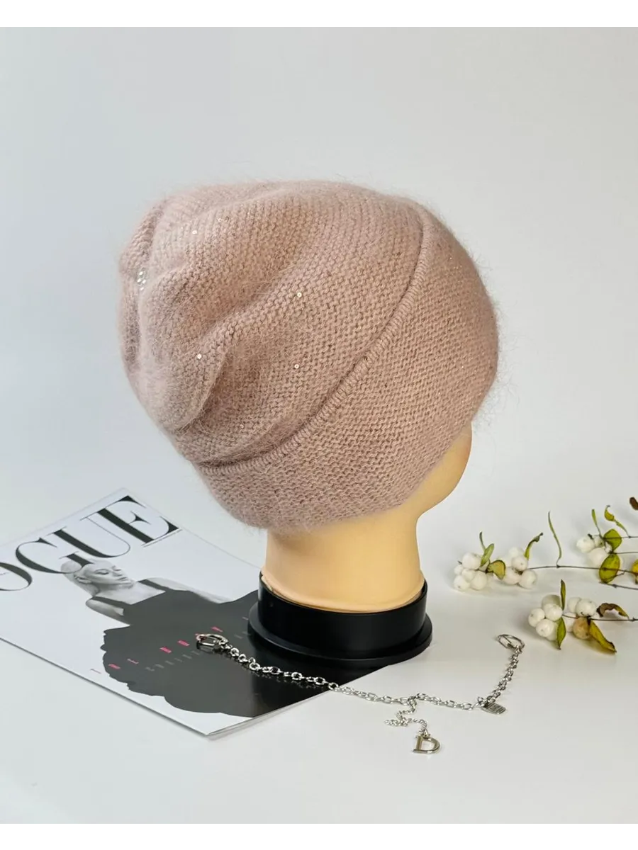 шапка женская зимняя вязаная теплая с пайетками