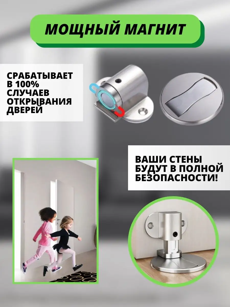 Ограничитель для двери напольный(стопор для двери)новинка 2023 года магнитный ограничитель для двери изготовлен из нержавеющей стали, а также регулируется по высоте в отличие от других фиксаторов(фиксатор для двери межкомнатные). Дверной ограничитель напольный имеет Регулируемый дизайн винты с шестигранной головкой могут регулировать высоту произвольно т.е удовлетворять потребности различной высоты, 22 мм может регулироваться. Дверной ограничитель предназначен для фиксации двери в открытом состоянии(фиксаторы для дверей). Бортик ограничитель монтируется на пол также ограничитель дверной для открытия двери можно фиксировать на двухсторонний скотч или на саморезы, которые находятся в комплекте. "Силиконовый ограничитель для двери" плавно и мягко фиксирует дверь, благодаря встроенному магниту(магнит для двери межкомнатной). Ограничитель на дверь (блокировка)отлично справляется со своей обязанностью при мытье полов он нисколько не мешает мыть полы, то есть не нужно переживать, что можно повредить руки или инструмент для мытья полов. Так как ограничитель для двери настенный выполнен из качественной нержавеющей стали(шпингалет дверной) то при попадании воды капли равномерно стекают и не оставляют ржавчины. Ограничитель от детей отличный вариант для тех у кого есть дети, так как при любых действиях маленьких детей можно не переживать за их безопасность. Напольный ограничитель для двери представлен в разнообразной цветовой гамме, что позволяет подобрать к любому интерьеру. стоп пер напольный (Магнитный дверной упор) скрытой установки состоит из двух частей: напольный и дверной магнит.стоп пер для двери магнитный имеет магнит, что позволяет удерживать дверь открытой, когда вам это удобно.