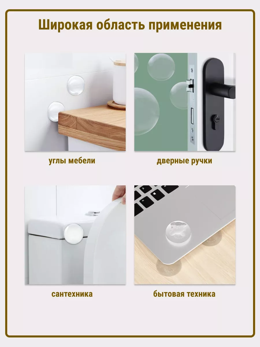 Ограничитель для двери силиконовый это отличный амортизатор для домашнего обихода. стоппер силиконовый для двери из мягкого прозрачного силикона, фиксатор для двери силиконовый имеет клейкую основу, которая не требует сверления и надежно держится на любой чистой поверхности. Стоппер силиконовый дверной фиксатор для двери надежно защищает стены и дверные ручки от повреждений, а также от неприятных звуков. Демпфер силиконовый отлично устраняет риски травм пальцев для детей и взрослых. Ограничитель силиконовый для двери Антиударный стопер отлично держится на межкомнатных дверях, дверце холодильника, плитке. Стопер напольный силиконовый ограничитель для двери Антиударный могут быть использованы как фиксатор дверной напольный препятствующий скольжению предметов. Стопор напольный и настенный самоклеющий силиконовый Демпфер поглощает шум при ударе двери за счет мягкого силикона, не деформируется от ударов и не боится воды. Упор прозрачный для двери силиконовый используется для установки в жилых и коммерческих помещениях.