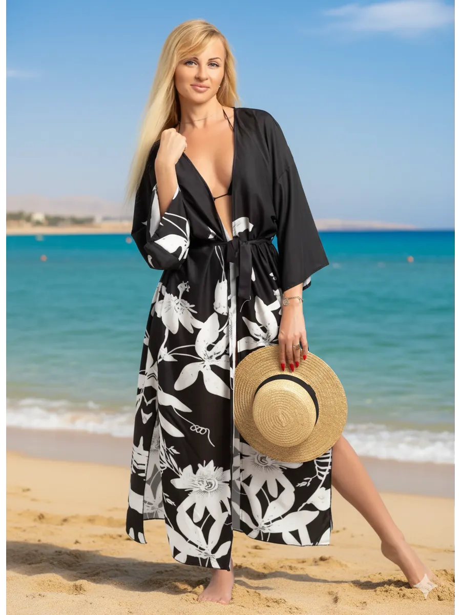 Представляем вам накидку на купальник - идеальный выбор для модных и стильных женщин, которые ценят комфорт и красоту одновременно. Пляжная накидка больших размеров - это отличный вариант для тех, кто хочет скрыть недостатки фигуры и выглядеть модно и красиво одновременно. Ее длинный крой позволит скрыть лишние сантиметры и подчеркнет женскую красоту.Но не только размеры делают эту накидку особенной. Ее женственный дизайн и стильный принт делают ее настоящим must-have для любой модницы. Благодаря длинному крою, эта накидка станет неотъемлемым аксессуаром для вашего пляжного образа.