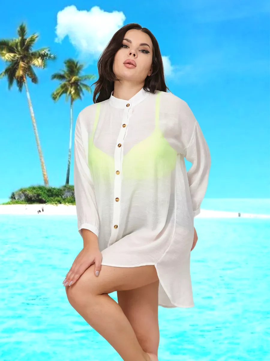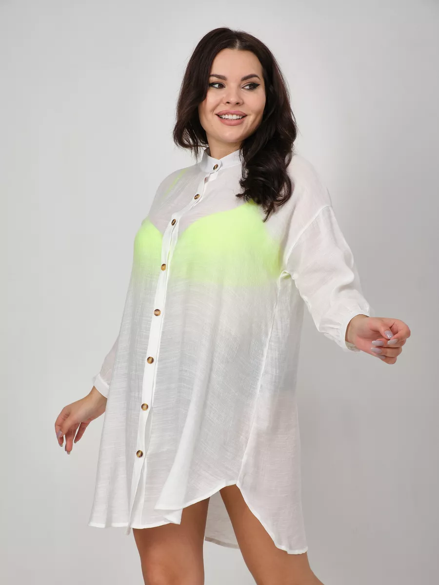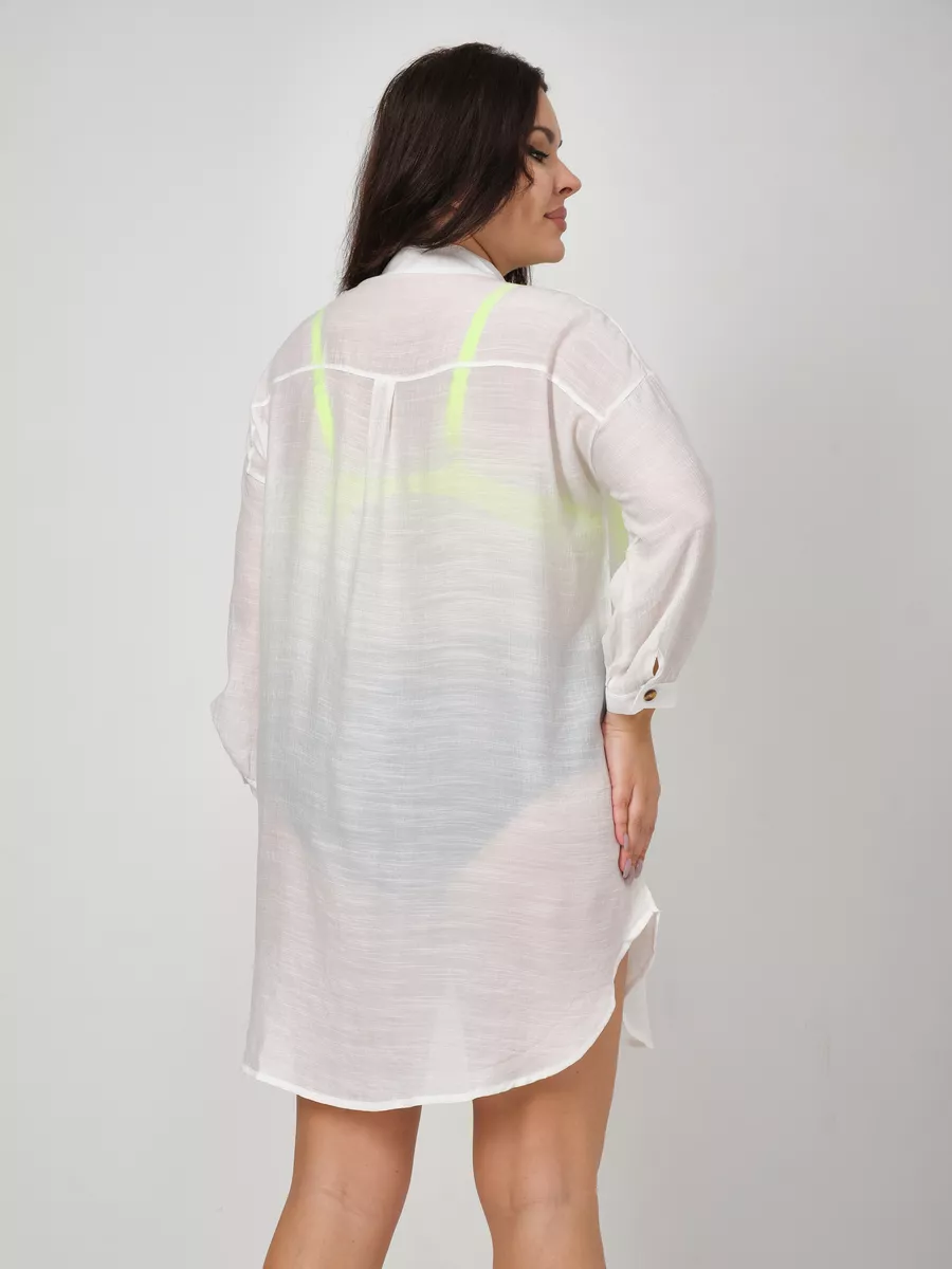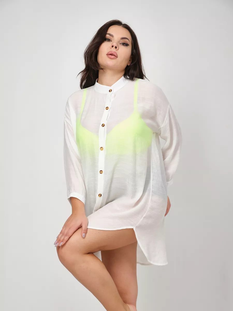 Туника пляжная женская Prey From God — лёгкая, свободная и стильная модель для отдыха и отпуска. Белая туника из тонкой полупрозрачной ткани идеально подходит для ношения поверх купальника. Мягкий материал приятен к телу, хорошо пропускает воздух и быстро сохнет после купания. Удлинённый крой и аккуратные пуговицы создают элегантный силуэт, который визуально стройнит фигуру. Туника женская подходит для любого типа фигуры, представлена в размерах L–4XL. Можно использовать как пляжную накидку, лёгкое платье или рубашку-тунику. Отличный выбор для отпуска, прогулок по морскому побережью, отдыха у бассейна и фотосессий. Белая туника универсальна и легко сочетается с купальниками любых цветов. Простая в уходе — достаточно ручной или деликатной стирки при 30 °C. Пляжная туника больших размеров станет незаменимой частью летнего гардероба, обеспечит комфорт и стиль в жаркие дни. Идеально подойдёт для женщин, ценящих удобство, лёгкость и женственность.