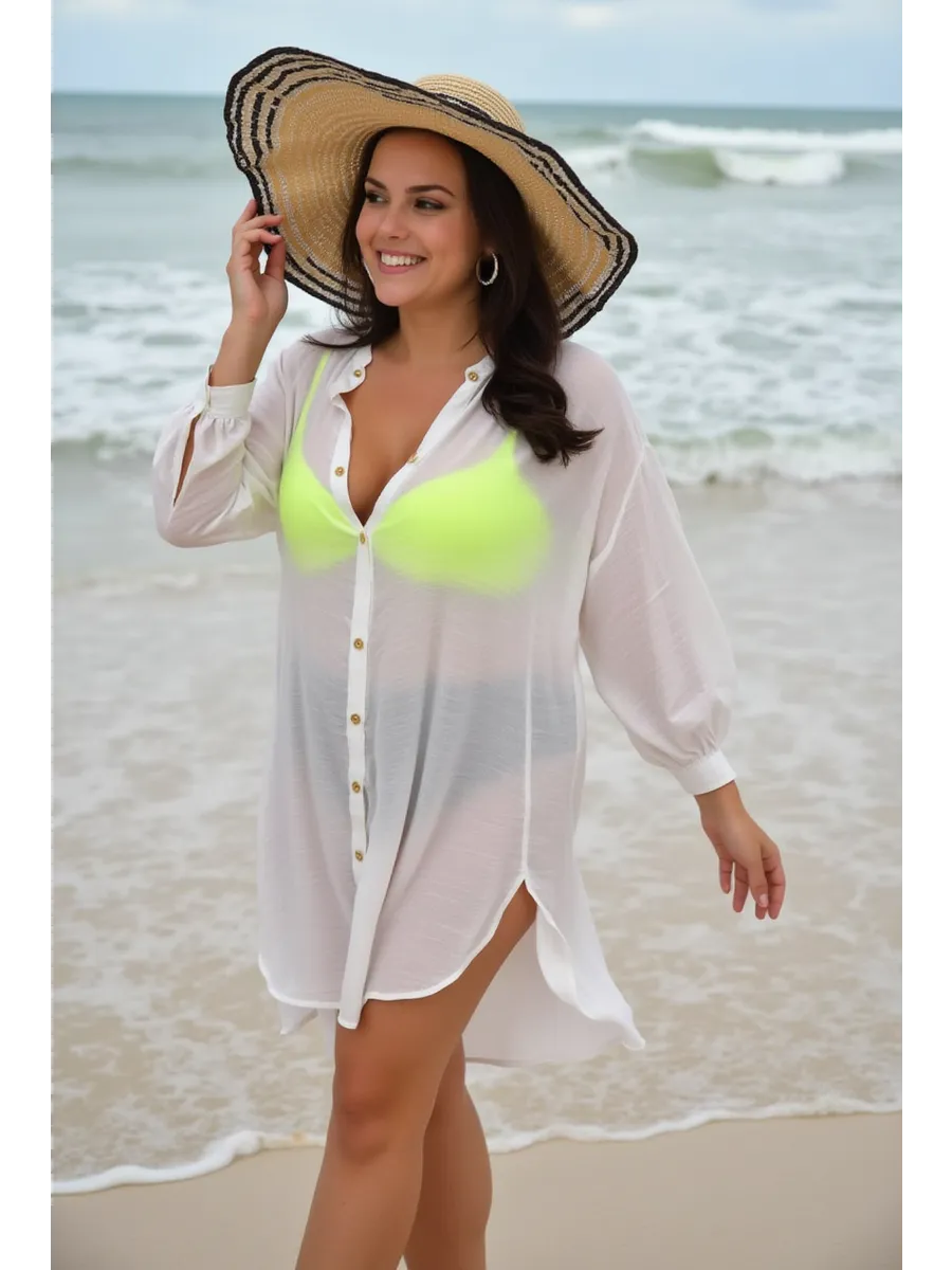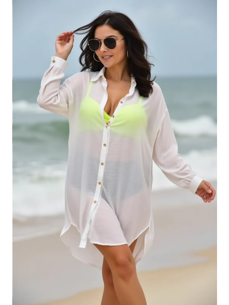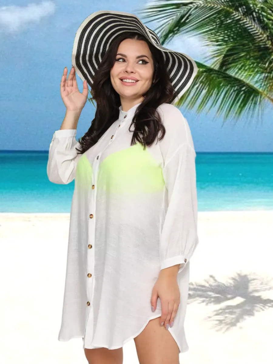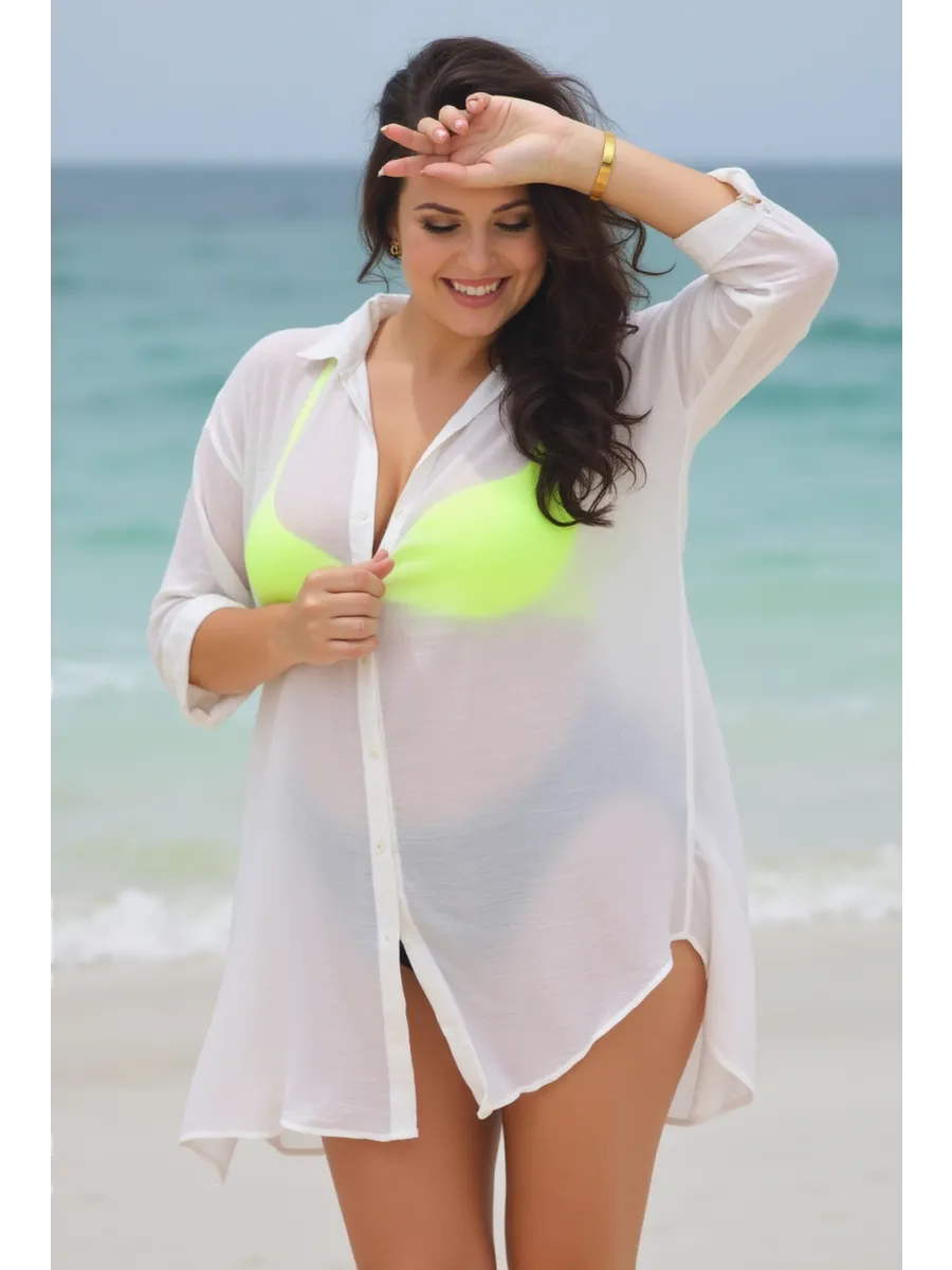 Туника пляжная женская Prey From God — лёгкая, свободная и стильная модель для отдыха и отпуска. Белая туника из тонкой полупрозрачной ткани идеально подходит для ношения поверх купальника. Мягкий материал приятен к телу, хорошо пропускает воздух и быстро сохнет после купания. Удлинённый крой и аккуратные пуговицы создают элегантный силуэт, который визуально стройнит фигуру. Туника женская подходит для любого типа фигуры, представлена в размерах L–4XL. Можно использовать как пляжную накидку, лёгкое платье или рубашку-тунику. Отличный выбор для отпуска, прогулок по морскому побережью, отдыха у бассейна и фотосессий. Белая туника универсальна и легко сочетается с купальниками любых цветов. Простая в уходе — достаточно ручной или деликатной стирки при 30 °C. Пляжная туника больших размеров станет незаменимой частью летнего гардероба, обеспечит комфорт и стиль в жаркие дни. Идеально подойдёт для женщин, ценящих удобство, лёгкость и женственность.