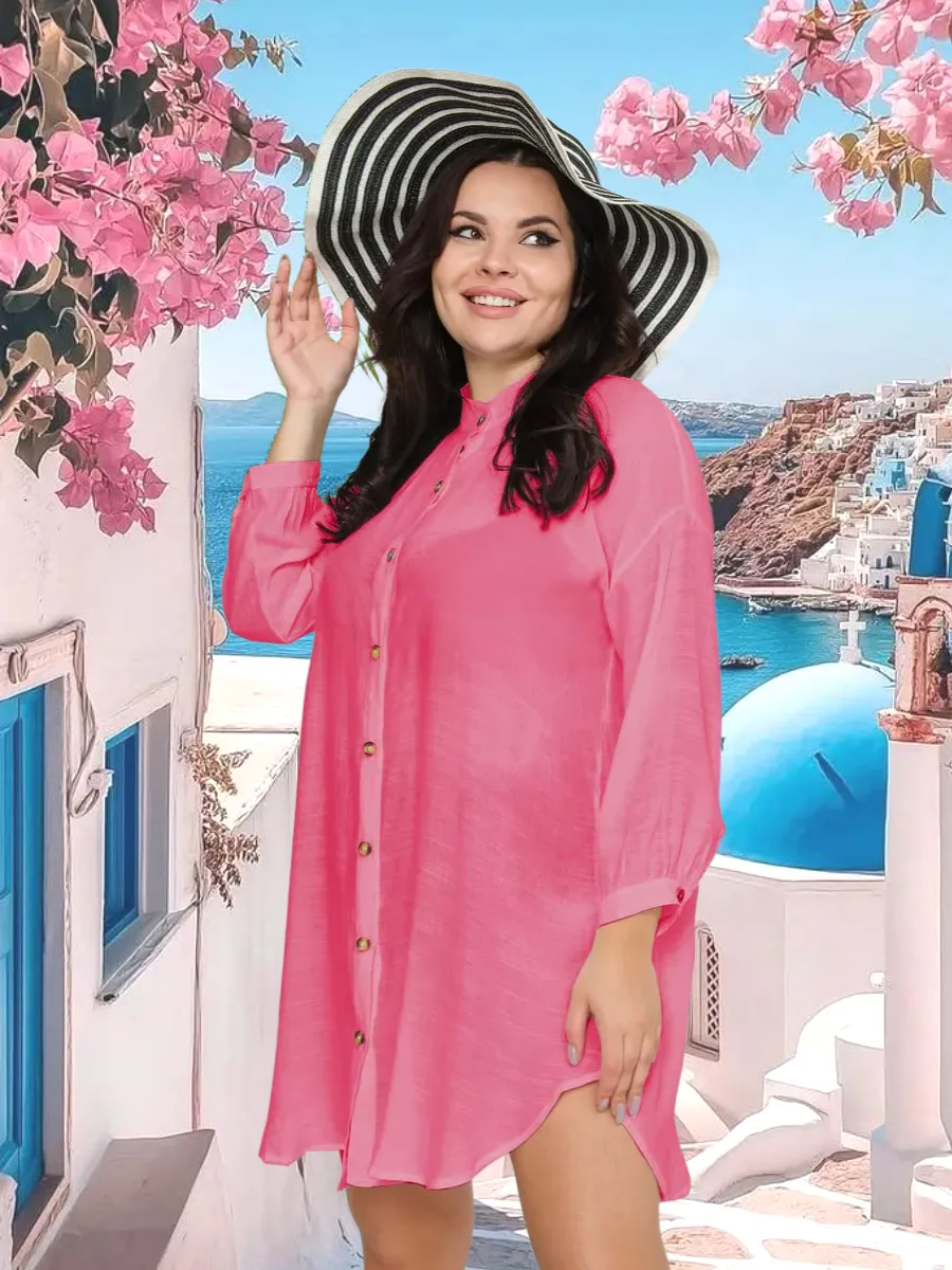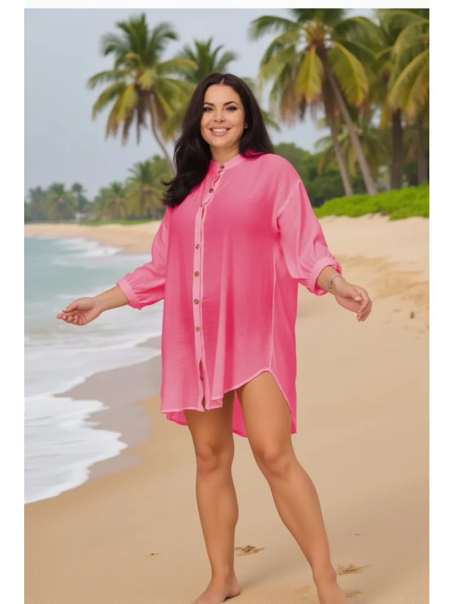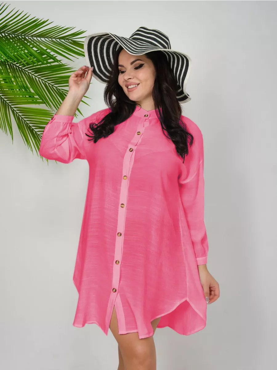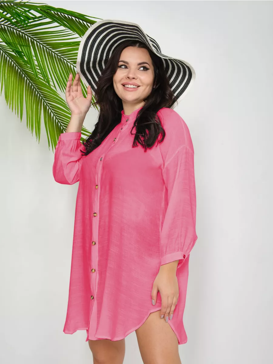 Туника пляжная женская Prey From God — лёгкая, свободная и стильная модель для отдыха и отпуска. Белая туника из тонкой полупрозрачной ткани идеально подходит для ношения поверх купальника. Мягкий материал приятен к телу, хорошо пропускает воздух и быстро сохнет после купания. Удлинённый крой и аккуратные пуговицы создают элегантный силуэт, который визуально стройнит фигуру. Туника женская подходит для любого типа фигуры, представлена в размерах L–4XL. Можно использовать как пляжную накидку, лёгкое платье или рубашку-тунику. Отличный выбор для отпуска, прогулок по морскому побережью, отдыха у бассейна и фотосессий. Белая туника универсальна и легко сочетается с купальниками любых цветов. Простая в уходе — достаточно ручной или деликатной стирки при 30 °C. Пляжная туника больших размеров станет незаменимой частью летнего гардероба, обеспечит комфорт и стиль в жаркие дни. Идеально подойдёт для женщин, ценящих удобство, лёгкость и женственность.