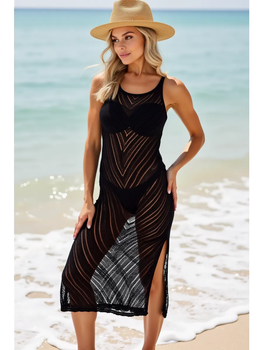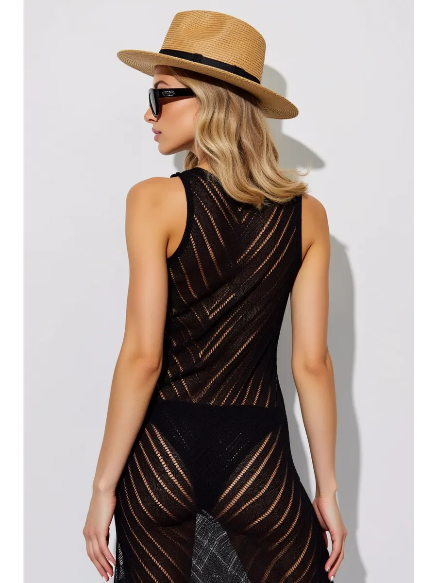 Встречайте идеальный спутник вашего отпуска – эту изысканную пляжную туника, которая станет жемчужиной летнего гардероба. Эта вязаная модель, выполненная в глубоком черная цвете, приковывает взгляды своей ажурной фактурой. Легкая, почти прозрачная ткань, напоминающая изящную сетку, дарит ощущение невесомости и комфорта даже в самый жаркий день.