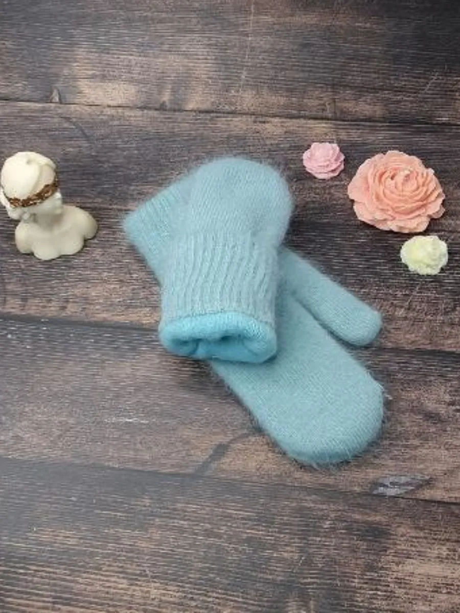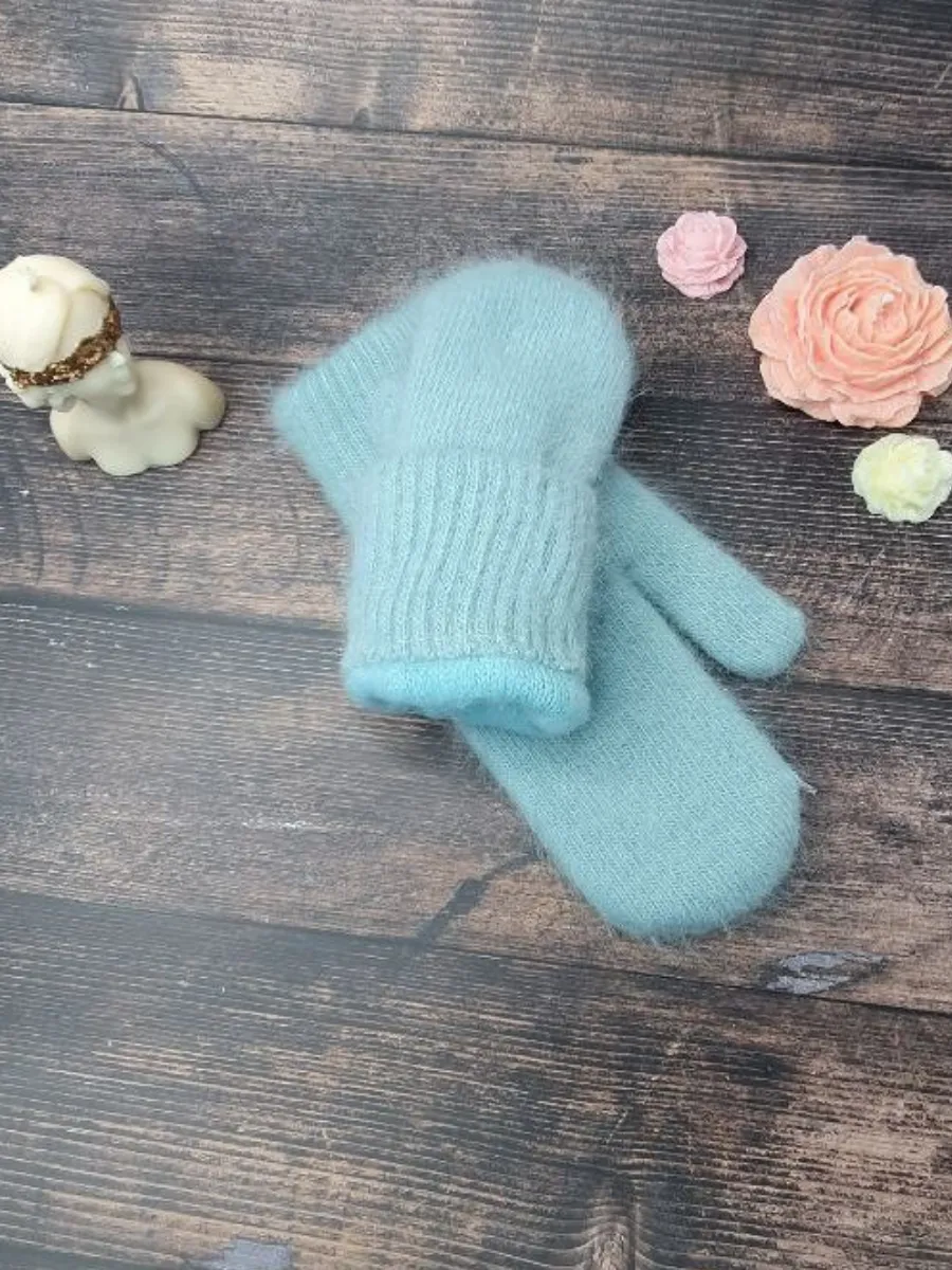 варежки пушистые трикотажные из ангорки,