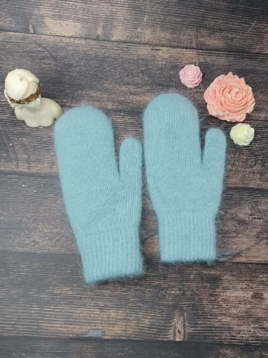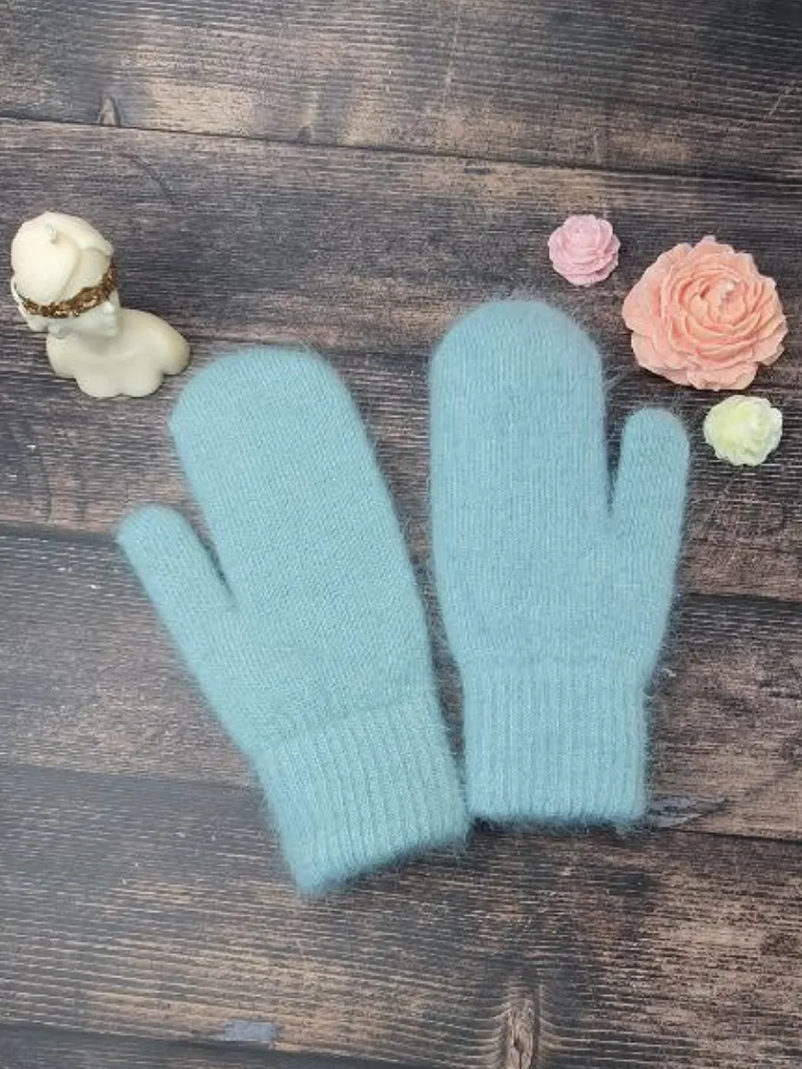 теплые вязаные варежки зимние из ангоры