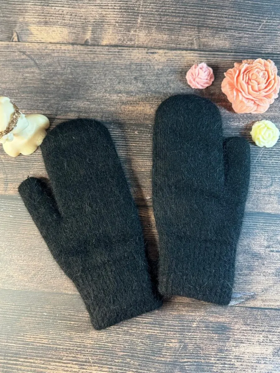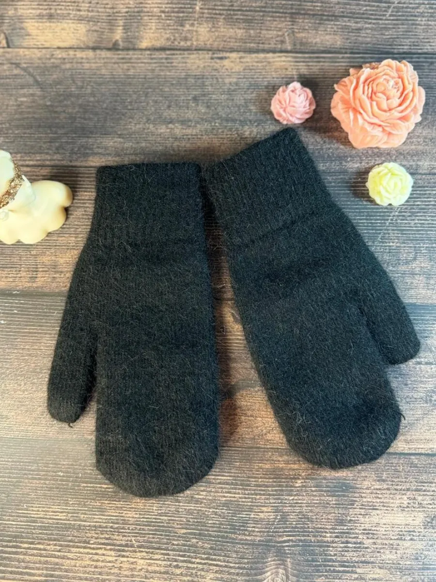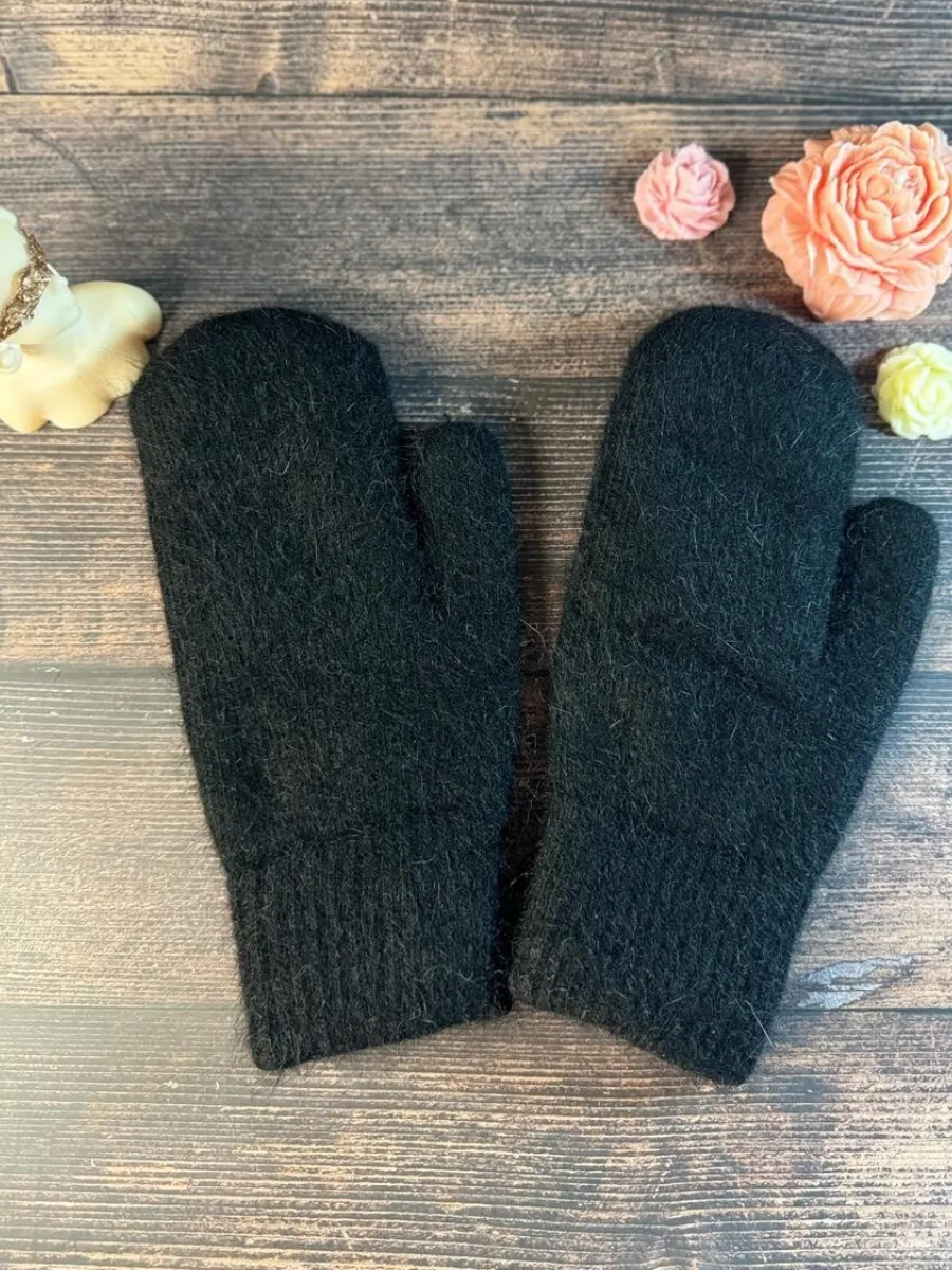 теплые вязаные варежки зимние из ангоры