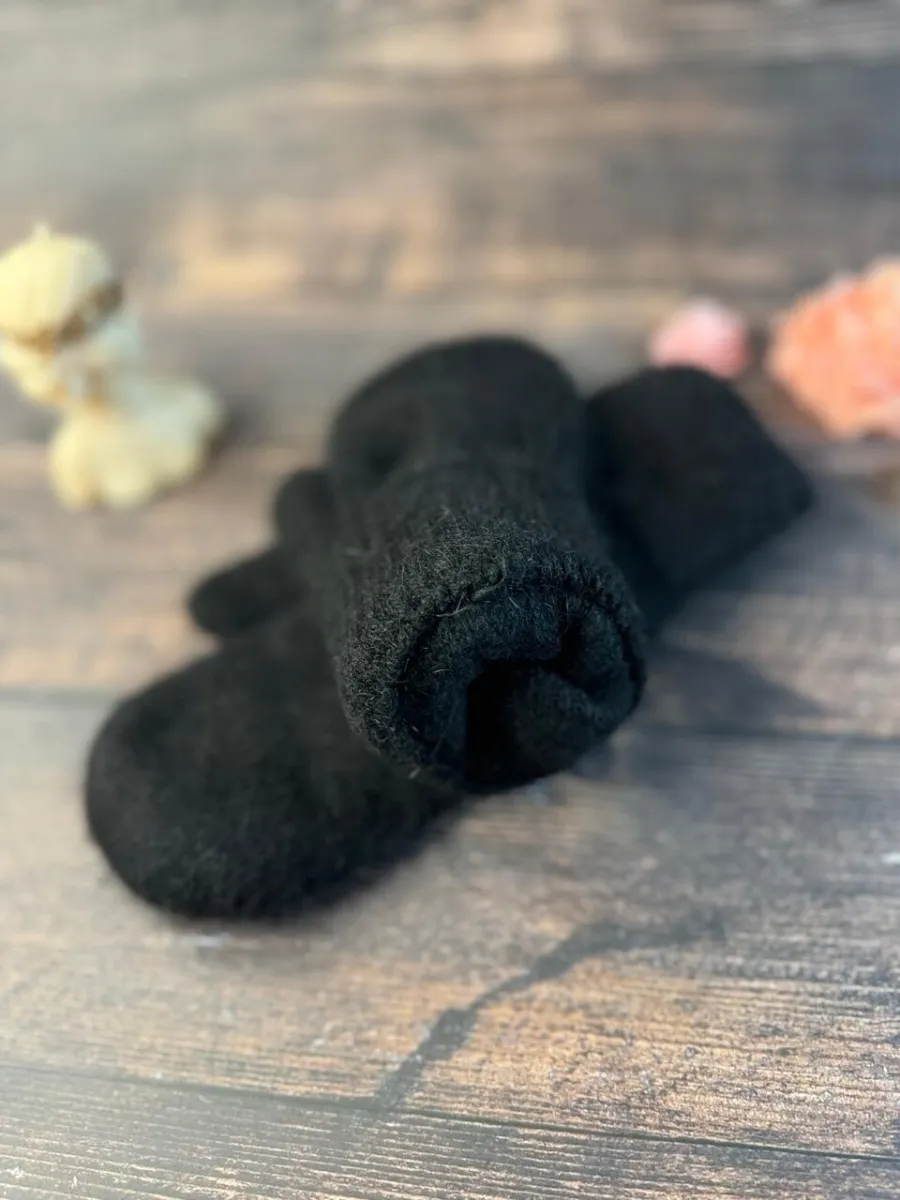 однотонные варежки шерстяные вязаные на резинке
