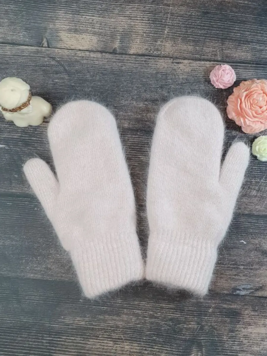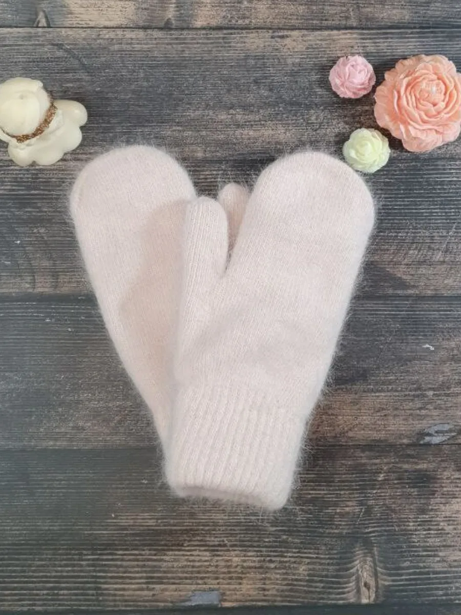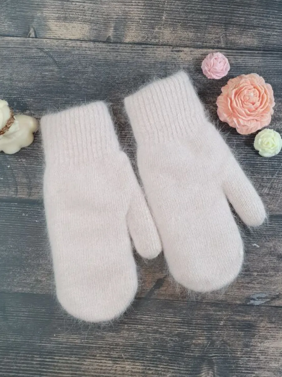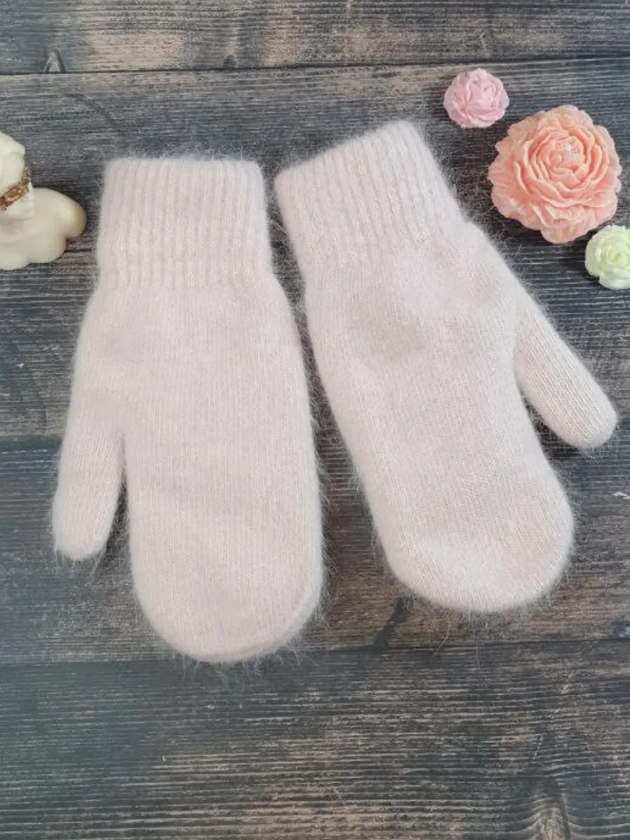 теплые вязаные варежки зимние из ангоры